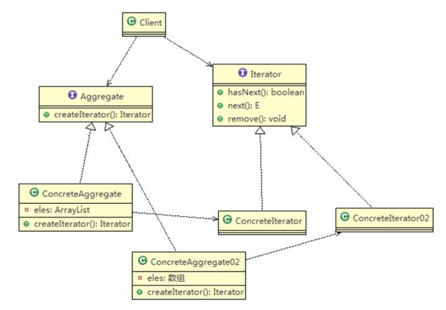 迭代器模式,解决统一遍历问题类图: