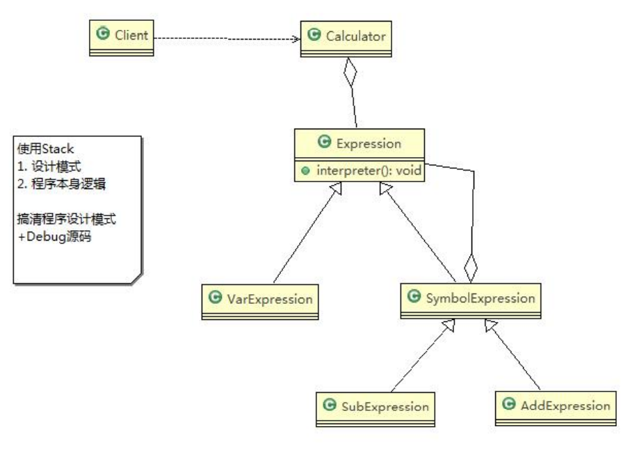解释器模式,实现四则运算类图:
