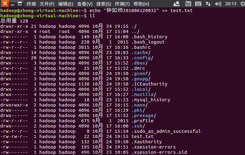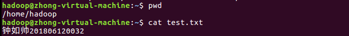 1.本地文件系统创建一个文件,输入带姓名学号信息。