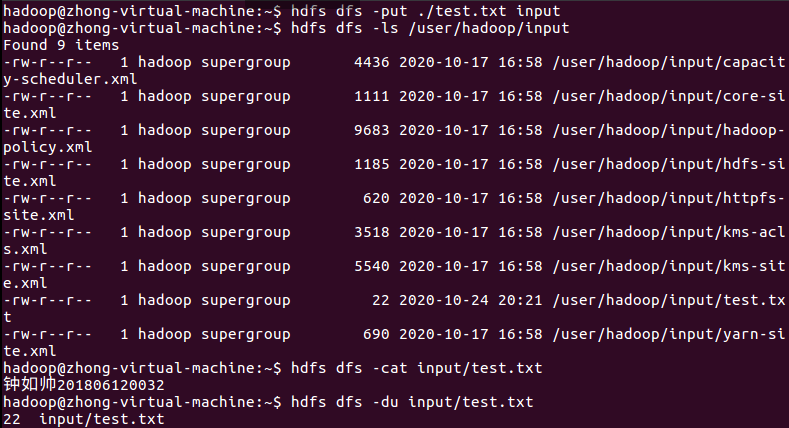4.将此文件上传到HDFS文件系统上的用户目录