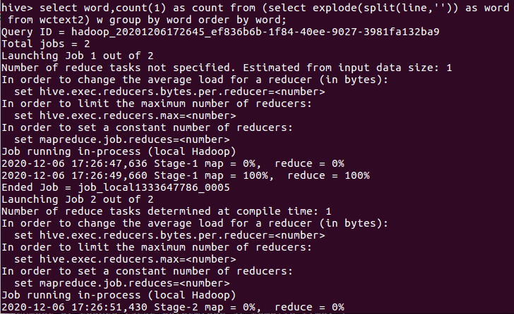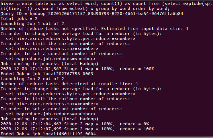 一、hive用本地文件进行词频统计
