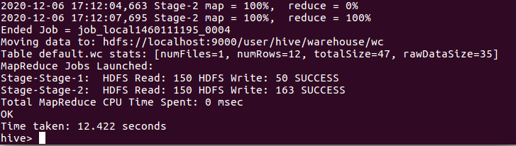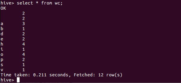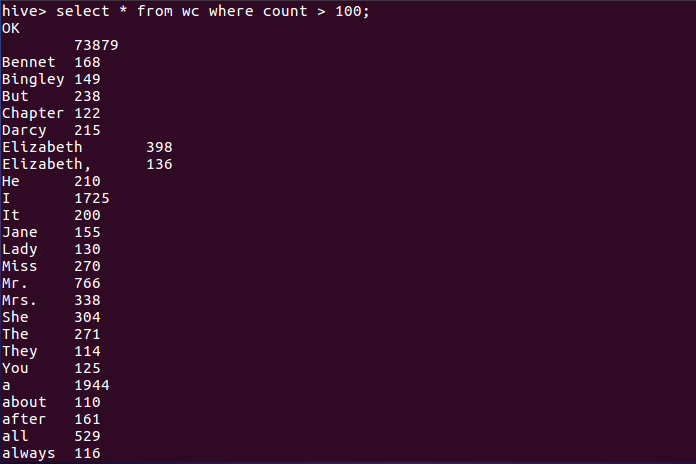 5.hql语句进行词频统计交将结果保存到结果表中