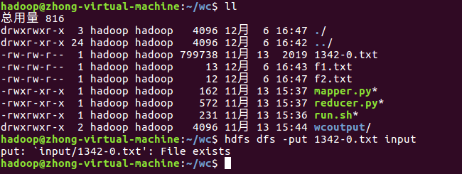 2.将文本文件上传到HDFS上