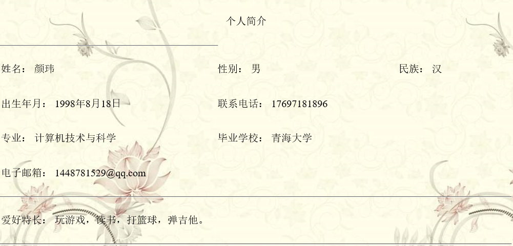 <td>爱好特长: 玩游戏,读书,打篮球,弹吉他。</td>