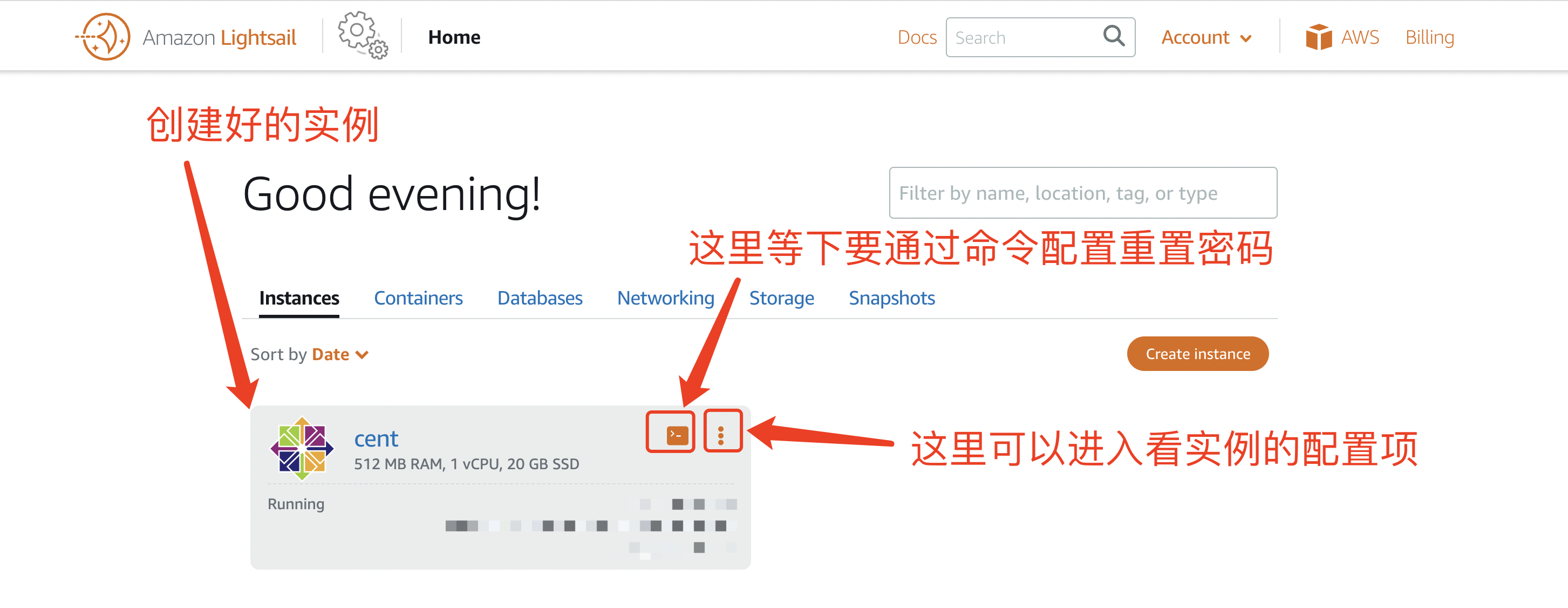 在 首次申请亚马逊云成功后,我们会进入以下界面,然后创建服务器实例