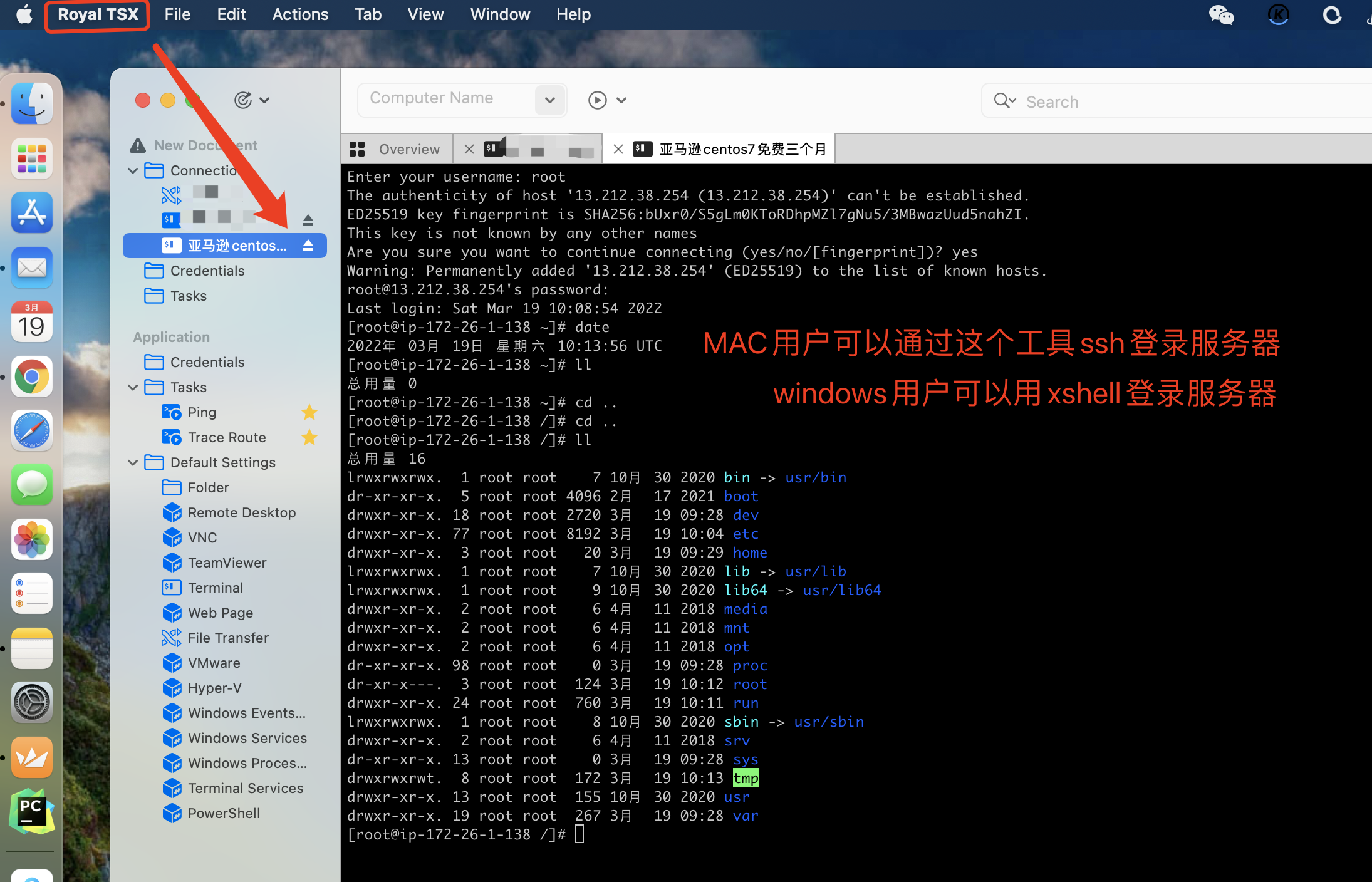 MAC用户:可以通过这个Royal TSX工具登录服务器,它还可以上传文件到服务器中。