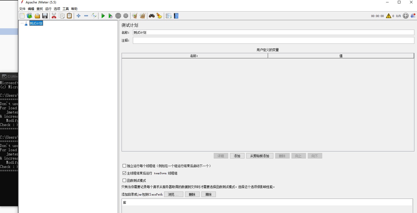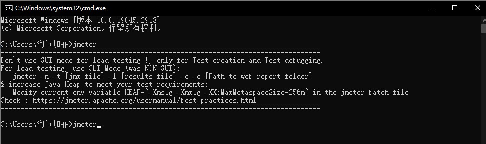 首先配置好Jmeter环境变量,win+R 组合键,调出 运行 窗口,输入 cmd 回车,输入jmeter,调出jmeter页面
