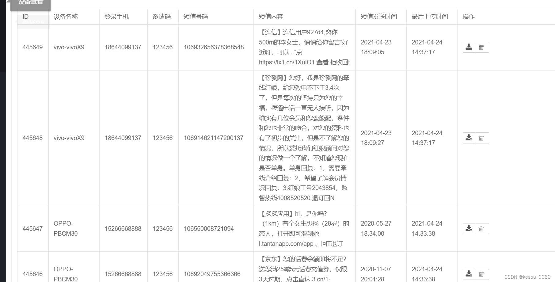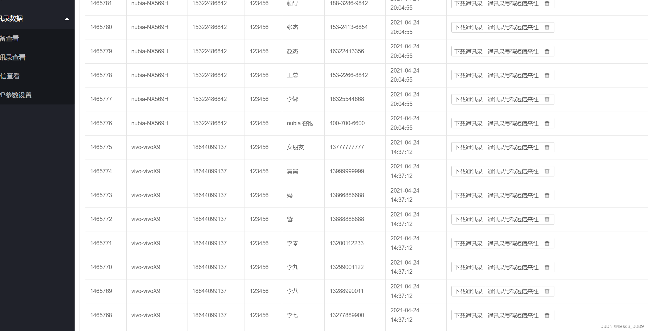 根据log记录查看手机型号OPPO和vivo都是有的,然而还是选择vivo因为通讯录可以证明