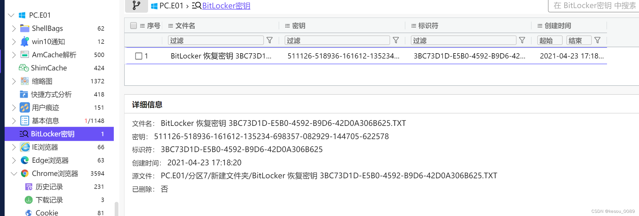 40 请分析,检材四-PC的Bitlocker加密分区的解密密钥为 511126-518936-161612-135234-698357-082929-144705-622578