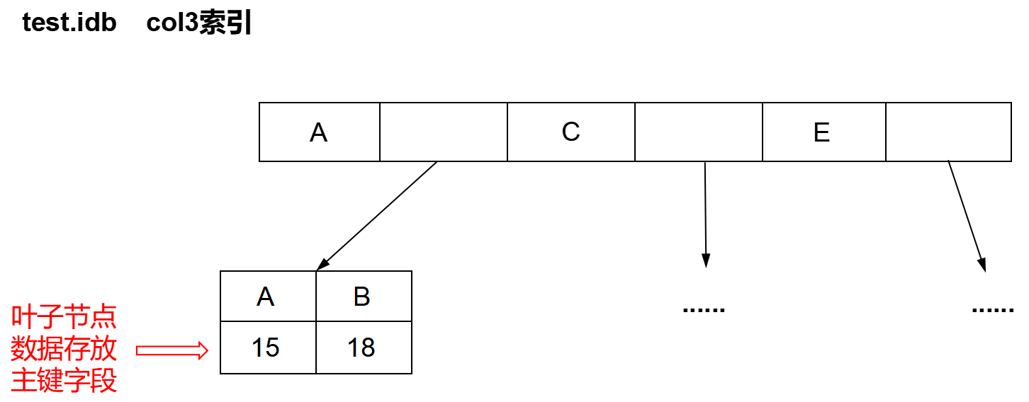 假设根据col1建立索引,则test.MYI中会有如下B+树索引: