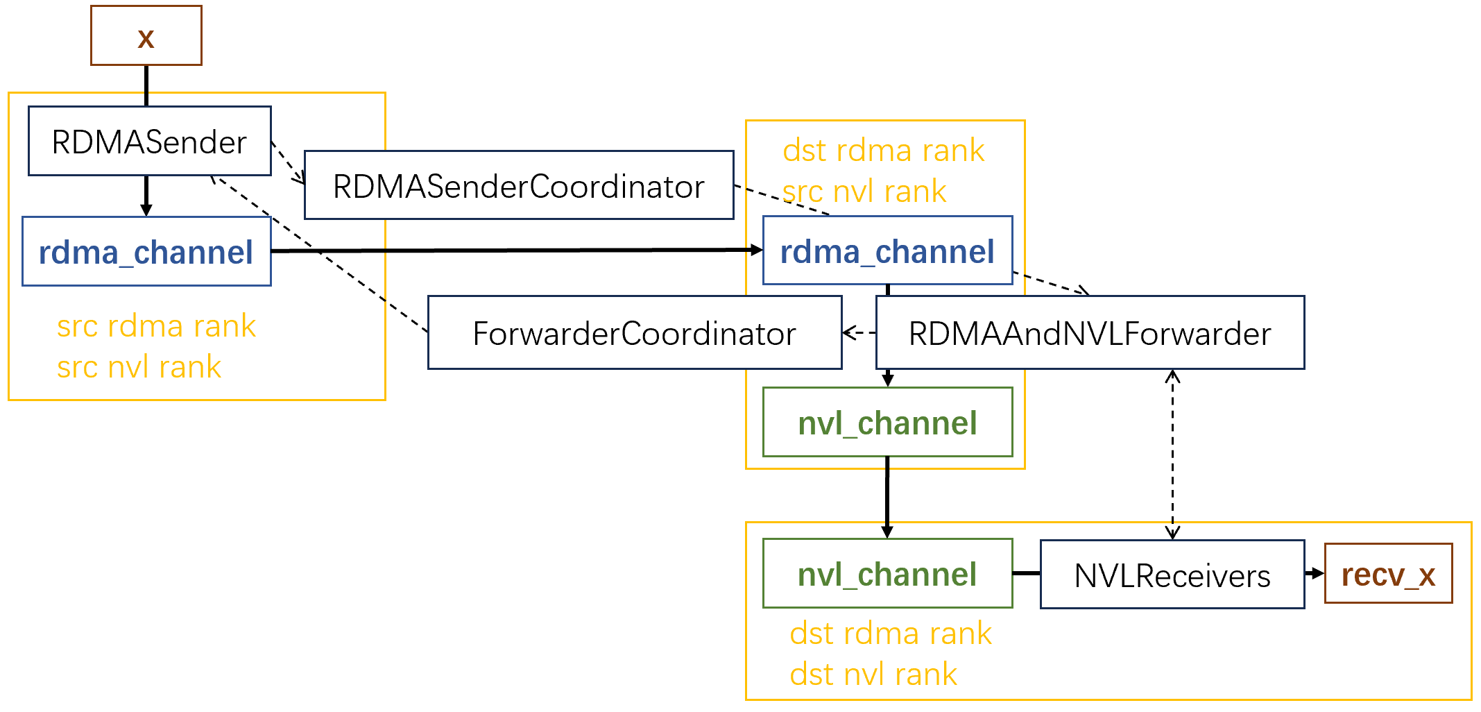 里的例子,分析一下DeepEP的源码,看看它究竟是如何做到这么快的。这里为了便于理解,我们先不考虑low_latency模式。