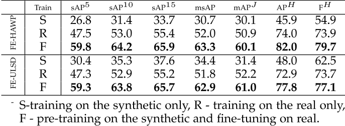 对两个数据集的大量实验证明了所提出方法的有效性。在真实数据集上进行测试时,我们的方法在 FE-Wireframe 上预训练并在 FE-Blurframe 上微调的模型实现了 63.3% 的平均结构平均精度 (msAP),与在合成模型上训练的模型相比分别提高了 32.6 和 11.3 个百分点 。