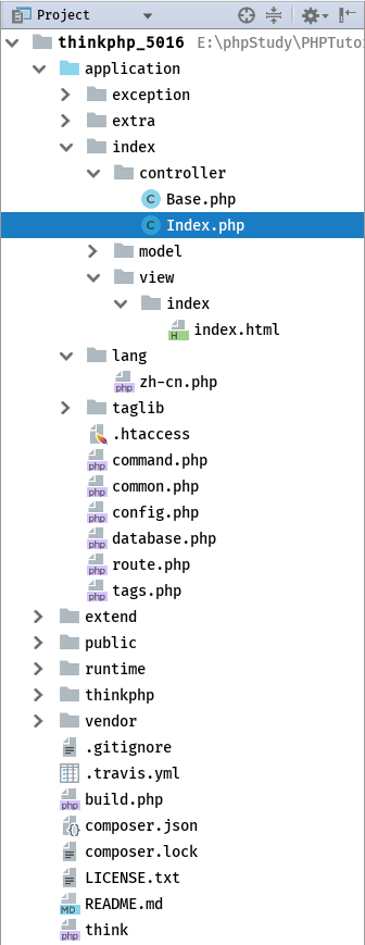 4.在你的控制器中新增一个类为Index.php及与之对应的模板,再创建一个基类为Base.php用于加载