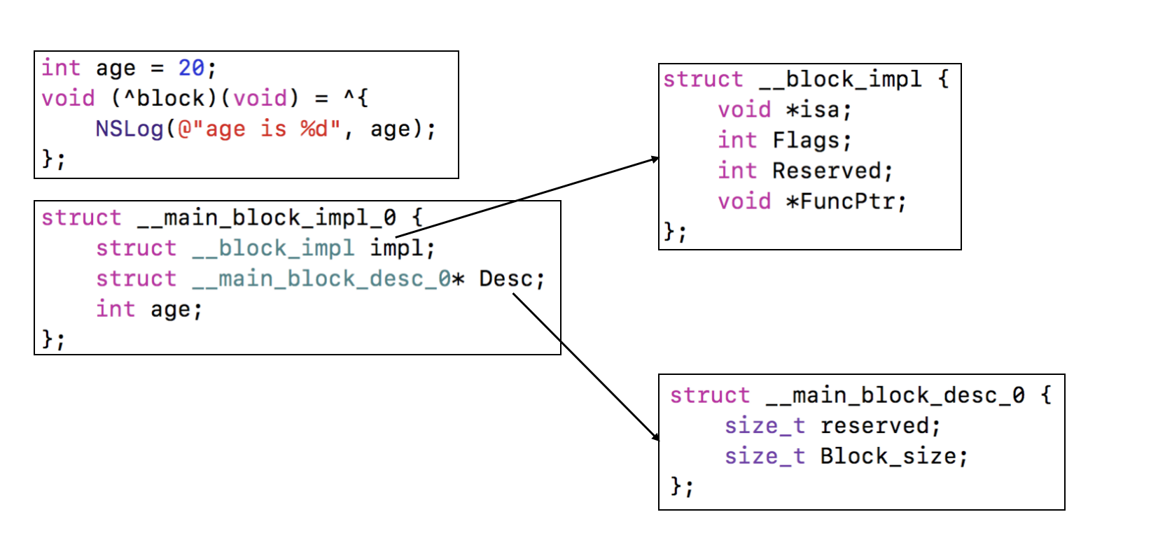 block内部有个变量捕获机制,将局部auto、static变量捕获到block内部
