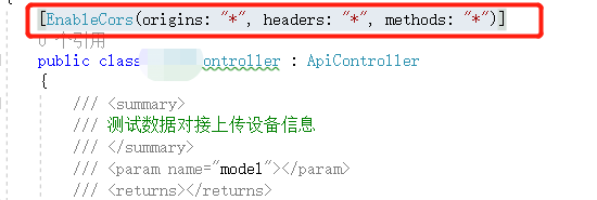 第三步,在控制器上加[EnableCors(origins: "*", headers: "*", methods: "*")]
