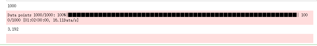 1 #蒙卡洛特矩中圆算概率 2 import random 3 import time 4 from tqdm import tqdm 5 6 count = 0 7 a=eval(input()) 8 random.seed(125) 9 data_iter=tqdm(range(a),unit='Data') 10 for i, _ in enumerate(data_iter): 11 data_iter.set_description('Data points {}/{}'.format(i+1,a)) 12 x,y=random.random(),random.random() 13 distance=pow(x**2 +y**2,0.5)#随机点到原点的距离 14 if distance<=1: 15 count+=1 16 time.sleep(0.05) 17 print((count/a)*4)#1/4个圆