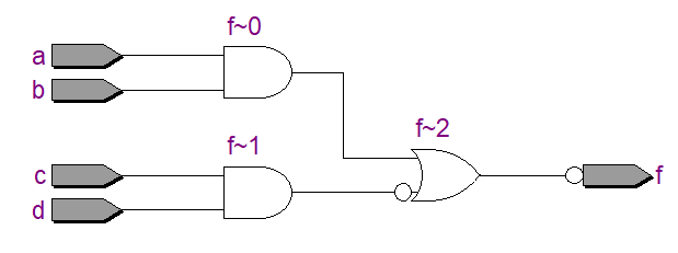 了解了Verilog语言逻辑表达,下面描述下图所示的组合逻辑结构;观察该电路可发现,该电路有与、与非、或非组成,逻辑表达式可以描述为:F =