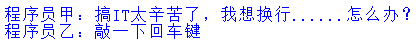 programmer_1 = '程序员甲:搞IT太辛苦了,我想换行......怎么办?'