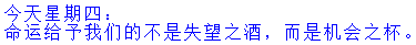 "今天星期四:\n命运给予我们的不是失望之酒,而是机会之杯。",