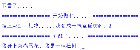 pinetree = '挂上彩灯、礼物......我变成一棵圣诞树@^.^@\n'