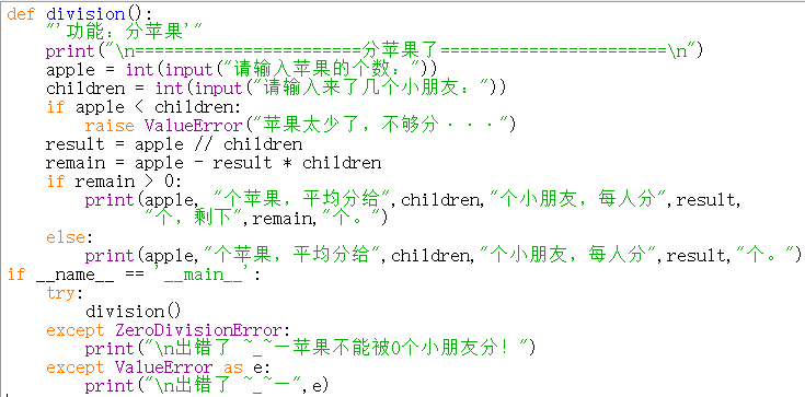 raise ValueError("苹果太少了,不够分···")