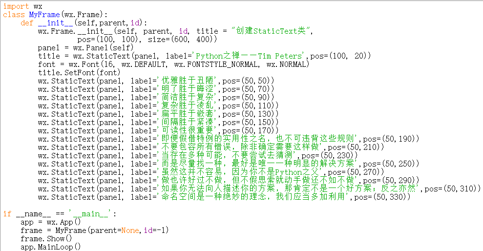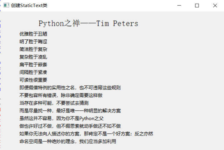 实例01 使用wx.StaticText输出Python之禅