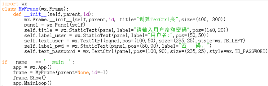 wx.Frame.__init__(self,parent,id, title="创建TexCtrl类",size=(400, 300))