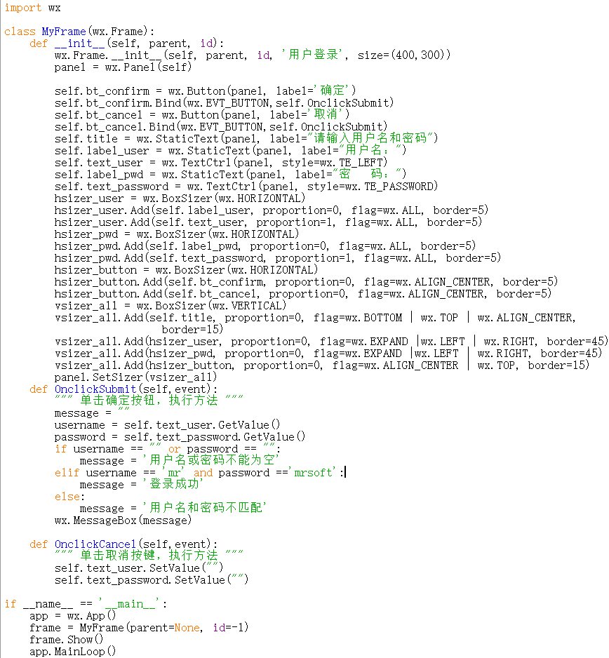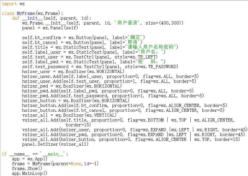 wx.Frame.__init__(self, parent, id, '用户登录', size=(400,300))