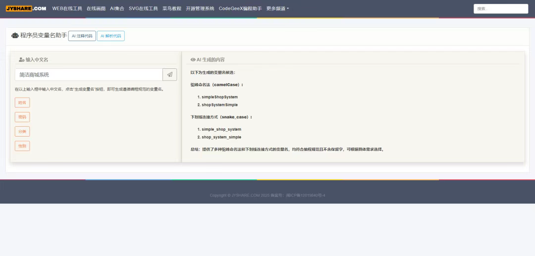 2款简洁好用的在线代码变量命名利器,让命名不再烦恼!