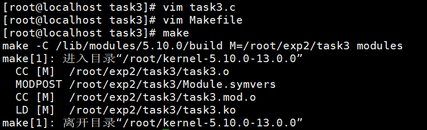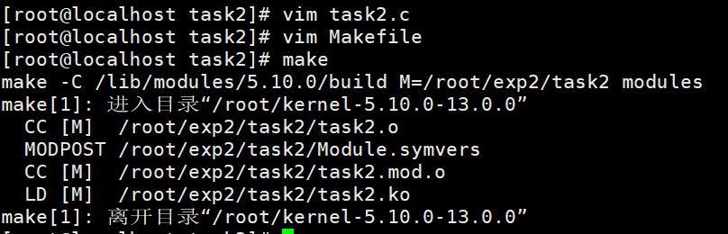 此时目录下会生成一系列文件,其中task1.ko是你的可加载内核模块,加载并查看结果