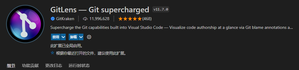 安装这个插件后,如果你的VSCode打开了一个Git管理的代码,则在VSCode编辑窗口中,可以看到所有的提交记录、改动文件,包括每一行代码的提交时间、提交人,非常方便。