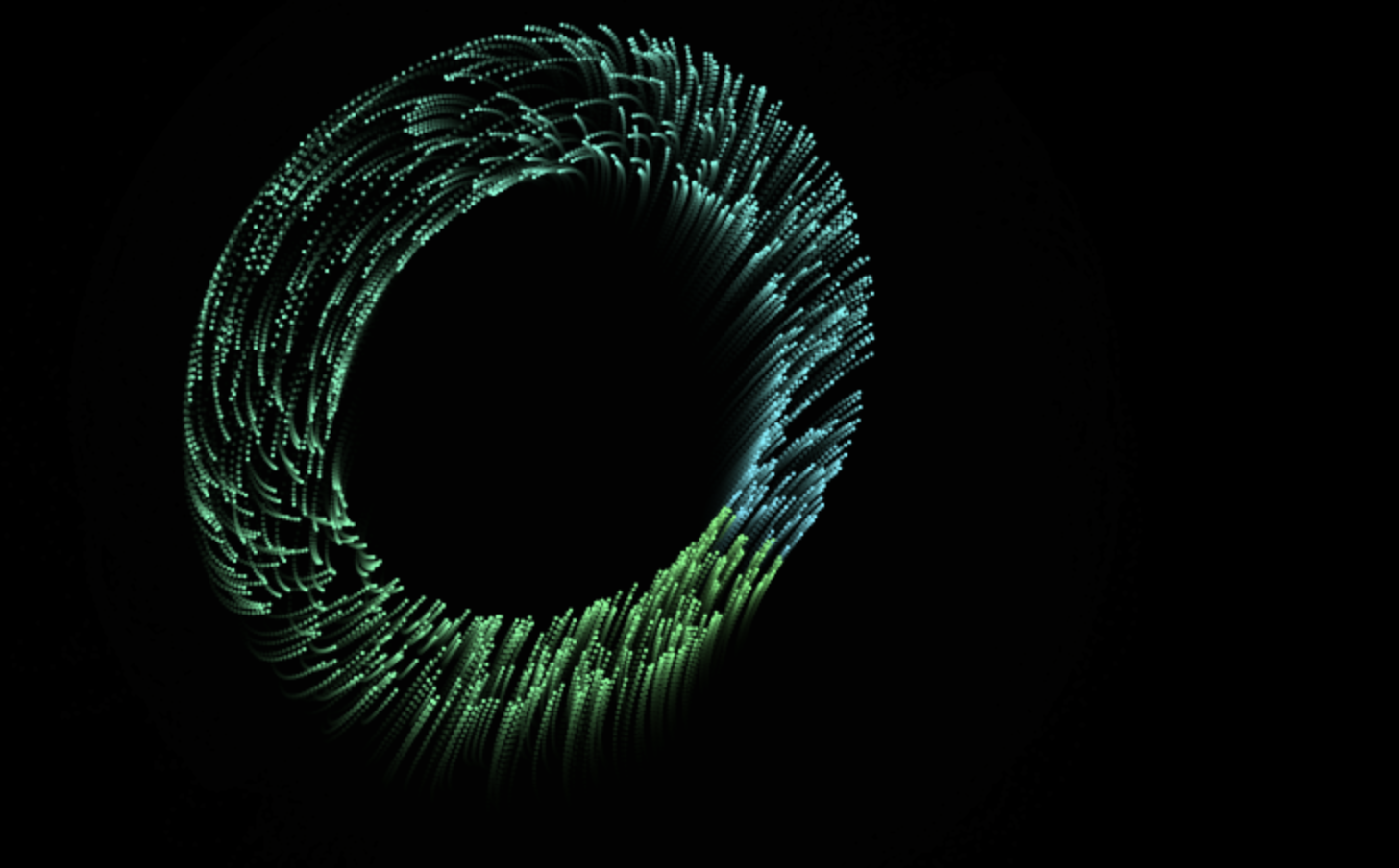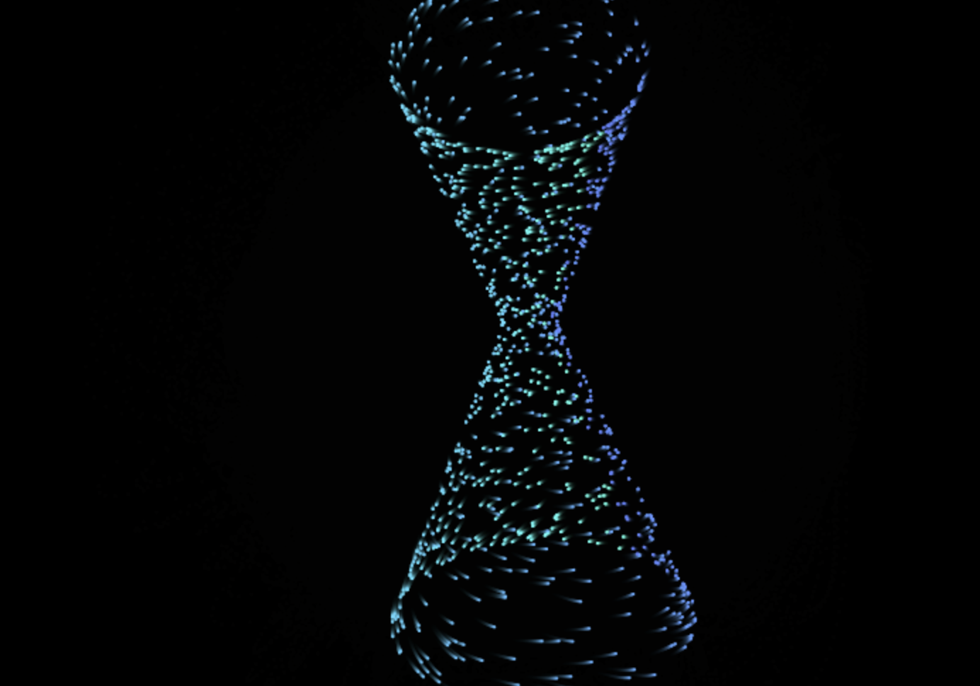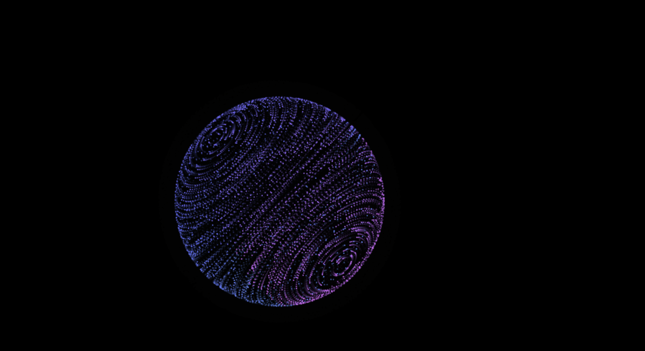 <!DOCTYPE html> <html lang="en"> <head> <meta charset="UTF-8"> <title>动态粒子效果</title> <script src="https://cdn.bootcss.com/jquery/3.4.1/jquery.js"></script> <style> html, body { width: 100%; height: 100%; margin: 0; padding: 0; overflow: hidden; } .container { width: 100%; height: 100%; margin: 0; padding: 0; background-color: #000000; } </style> </head> <body> <div id="jsi-particle-container" class="container"></div> <script> var RENDERER = { PARTICLE_COUNT: 1000, PARTICLE_RADIUS: 1, MAX_ROTATION_ANGLE: Math.PI / 60, TRANSLATION_COUNT: 500, init: function (strategy) { this.setParameters(strategy); this.createParticles(); this.setupFigure(); this.reconstructMethod(); this.bindEvent(); this.drawFigure(); }, setParameters: function (strategy) { this.$window = $(window); this.$container = $('#jsi-particle-container'); this.width = this.$container.width(); this.height = this.$container.height(); this.$canvas = $('<canvas />').attr({ width: this.width, height: this.height }).appendTo(this.$container); this.context = this.$canvas.get(0).getContext('2d'); this.center = { x: this.width / 2, y: this.height / 2 }; this.rotationX = this.MAX_ROTATION_ANGLE; this.rotationY = this.MAX_ROTATION_ANGLE; this.strategyIndex = 0; this.translationCount = 0; this.theta = 0; this.strategies = strategy.getStrategies(); this.particles = []; }, createParticles: function () { for (var i = 0; i < this.PARTICLE_COUNT; i++) { this.particles.push(new PARTICLE(this.center)); } }, reconstructMethod: function () { this.setupFigure = this.setupFigure.bind(this); this.drawFigure = this.drawFigure.bind(this); this.changeAngle = this.changeAngle.bind(this); }, bindEvent: function () { this.$container.on('click', this.setupFigure); this.$container.on('mousemove', this.changeAngle); }, changeAngle: function (event) { var offset = this.$container.offset(), x = event.clientX - offset.left + this.$window.scrollLeft(), y = event.clientY - offset.top + this.$window.scrollTop(); this.rotationX = (this.center.y - y) / this.center.y * this.MAX_ROTATION_ANGLE; this.rotationY = (this.center.x - x) / this.center.x * this.MAX_ROTATION_ANGLE; }, setupFigure: function () { for (var i = 0, length = this.particles.length; i < length; i++) { this.particles[i].setAxis(this.strategies[this.strategyIndex]()); } if (++this.strategyIndex == this.strategies.length) { this.strategyIndex = 0; } this.translationCount = 0; }, drawFigure: function () { requestAnimationFrame(this.drawFigure); this.context.fillStyle = 'rgba(0, 0, 0, 0.2)'; this.context.fillRect(0, 0, this.width, this.height); for (var i = 0, length = this.particles.length; i < length; i++) { var axis = this.particles[i].getAxis2D(this.theta); this.context.beginPath(); this.context.fillStyle = axis.color; this.context.arc(axis.x, axis.y, this.PARTICLE_RADIUS, 0, Math.PI * 2, false); this.context.fill(); } this.theta++; this.theta %= 360; for (var i = 0, length = this.particles.length; i < length; i++) { this.particles[i].rotateX(this.rotationX); this.particles[i].rotateY(this.rotationY); } this.translationCount++; this.translationCount %= this.TRANSLATION_COUNT; if (this.translationCount == 0) { this.setupFigure(); } } }; var STRATEGY = { SCATTER_RADIUS: 150, CONE_ASPECT_RATIO: 1.5, RING_COUNT: 5, getStrategies: function () { var strategies = []; for (var i in this) { if (this[i] == arguments.callee || typeof this[i] != 'function') { continue; } strategies.push(this[i].bind(this)); } return strategies; }, createSphere: function () { var cosTheta = Math.random() * 2 - 1, sinTheta = Math.sqrt(1 - cosTheta * cosTheta), phi = Math.random() * 2 * Math.PI; return { x: this.SCATTER_RADIUS * sinTheta * Math.cos(phi), y: this.SCATTER_RADIUS * sinTheta * Math.sin(phi), z: this.SCATTER_RADIUS * cosTheta, hue: Math.round(phi / Math.PI * 30) }; }, createTorus: function () { var theta = Math.random() * Math.PI * 2, x = this.SCATTER_RADIUS + this.SCATTER_RADIUS / 6 * Math.cos(theta), y = this.SCATTER_RADIUS / 6 * Math.sin(theta), phi = Math.random() * Math.PI * 2; return { x: x * Math.cos(phi), y: y, z: x * Math.sin(phi), hue: Math.round(phi / Math.PI * 30) }; }, createCone: function () { var status = Math.random() > 1 / 3, x, y, phi = Math.random() * Math.PI * 2, rate = Math.tan(30 / 180 * Math.PI) / this.CONE_ASPECT_RATIO; if (status) { y = this.SCATTER_RADIUS * (1 - Math.random() * 2); x = (this.SCATTER_RADIUS - y) * rate; } else { y = -this.SCATTER_RADIUS; x = this.SCATTER_RADIUS * 2 * rate * Math.random(); } return { x: x * Math.cos(phi), y: y, z: x * Math.sin(phi), hue: Math.round(phi / Math.PI * 30) }; }, createVase: function () { var theta = Math.random() * Math.PI, x = Math.abs(this.SCATTER_RADIUS * Math.cos(theta) / 2) + this.SCATTER_RADIUS / 8, y = this.SCATTER_RADIUS * Math.cos(theta) * 1.2, phi = Math.random() * Math.PI * 2; return { x: x * Math.cos(phi), y: y, z: x * Math.sin(phi), hue: Math.round(phi / Math.PI * 30) }; } }; var PARTICLE = function (center) { this.center = center; this.init(); }; PARTICLE.prototype = { SPRING: 0.01, FRICTION: 0.9, FOCUS_POSITION: 300, COLOR: 'hsl(%hue, 100%, 70%)', init: function () { this.x = 0; this.y = 0; this.z = 0; this.vx = 0; this.vy = 0; this.vz = 0; this.color; }, setAxis: function (axis) { this.translating = true; this.nextX = axis.x; this.nextY = axis.y; this.nextZ = axis.z; this.hue = axis.hue; }, rotateX: function (angle) { var sin = Math.sin(angle), cos = Math.cos(angle), nextY = this.nextY * cos - this.nextZ * sin, nextZ = this.nextZ * cos + this.nextY * sin, y = this.y * cos - this.z * sin, z = this.z * cos + this.y * sin; this.nextY = nextY; this.nextZ = nextZ; this.y = y; this.z = z; }, rotateY: function (angle) { var sin = Math.sin(angle), cos = Math.cos(angle), nextX = this.nextX * cos - this.nextZ * sin, nextZ = this.nextZ * cos + this.nextX * sin, x = this.x * cos - this.z * sin, z = this.z * cos + this.x * sin; this.nextX = nextX; this.nextZ = nextZ; this.x = x; this.z = z; }, rotateZ: function (angle) { var sin = Math.sin(a