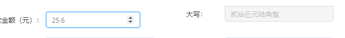 //methods: inputAmount(number) { let ret = '' if (number !== '' && number != null && number !== '0') { let unit = '仟佰拾亿仟佰拾万仟佰拾元角分' let str = '' number += '00' const point = number.indexOf('.') if (point >= 0) { number = number.substring(0, point) + number.substr(point + 1, 2) } unit = unit.substr(unit.length - number.length) for (let i = 0; i < number.length; i++) { str += '零壹贰叁肆伍陆柒捌玖'.charAt(number.charAt(i)) + unit.charAt(i) } ret = str .replace(/零(仟|佰|拾|角)/g, '零') .replace(/(零)+/g, '零') .replace(/零(万|亿|元)/g, '$1') .replace(/(亿)万|(拾)/g, '$1$2') .replace(/^元零?|零分/g, '') .replace(/元$/g, '元') + '整' } this.text = ret },
