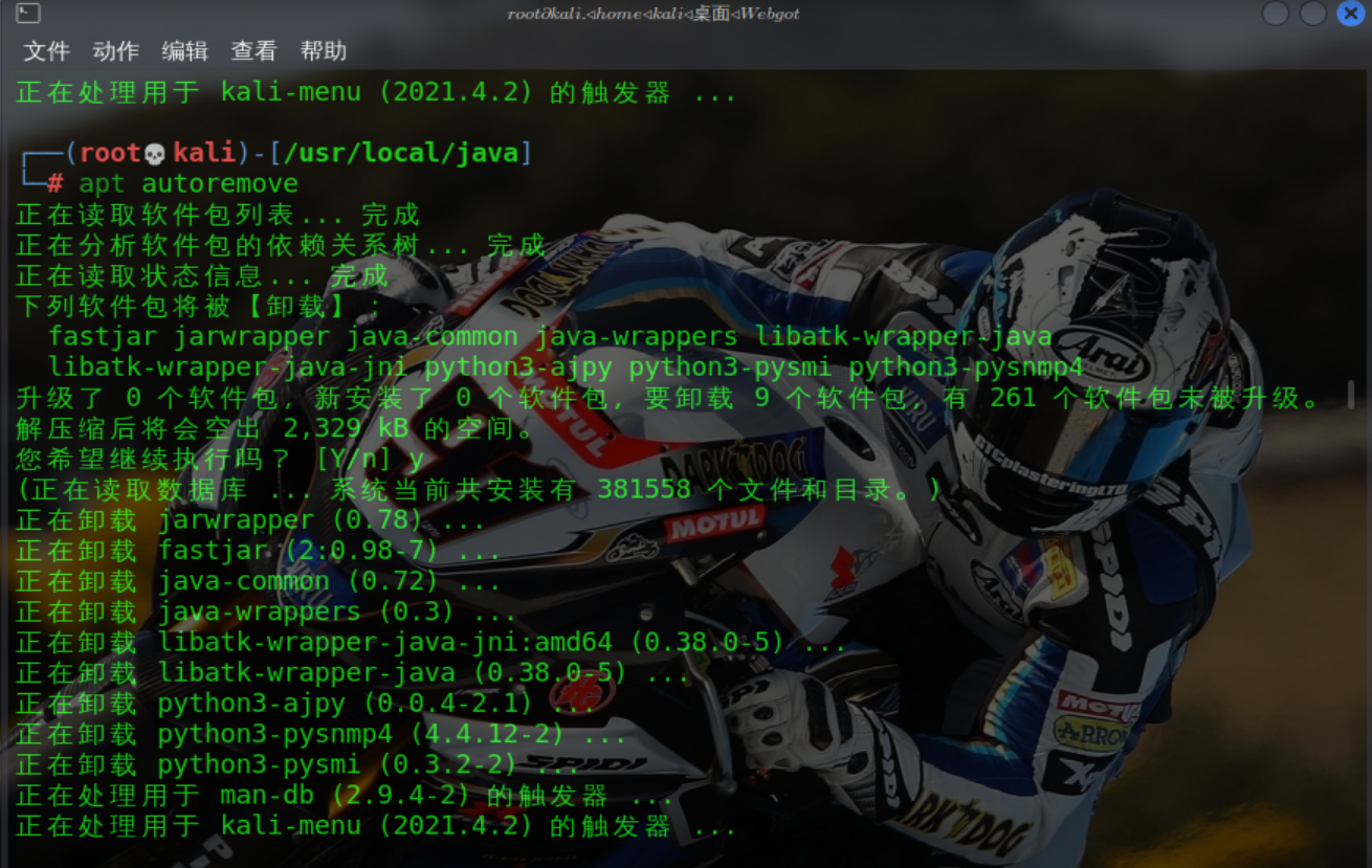 2. 再将不再需要的java软件卸载,输入命令:apt autoremove