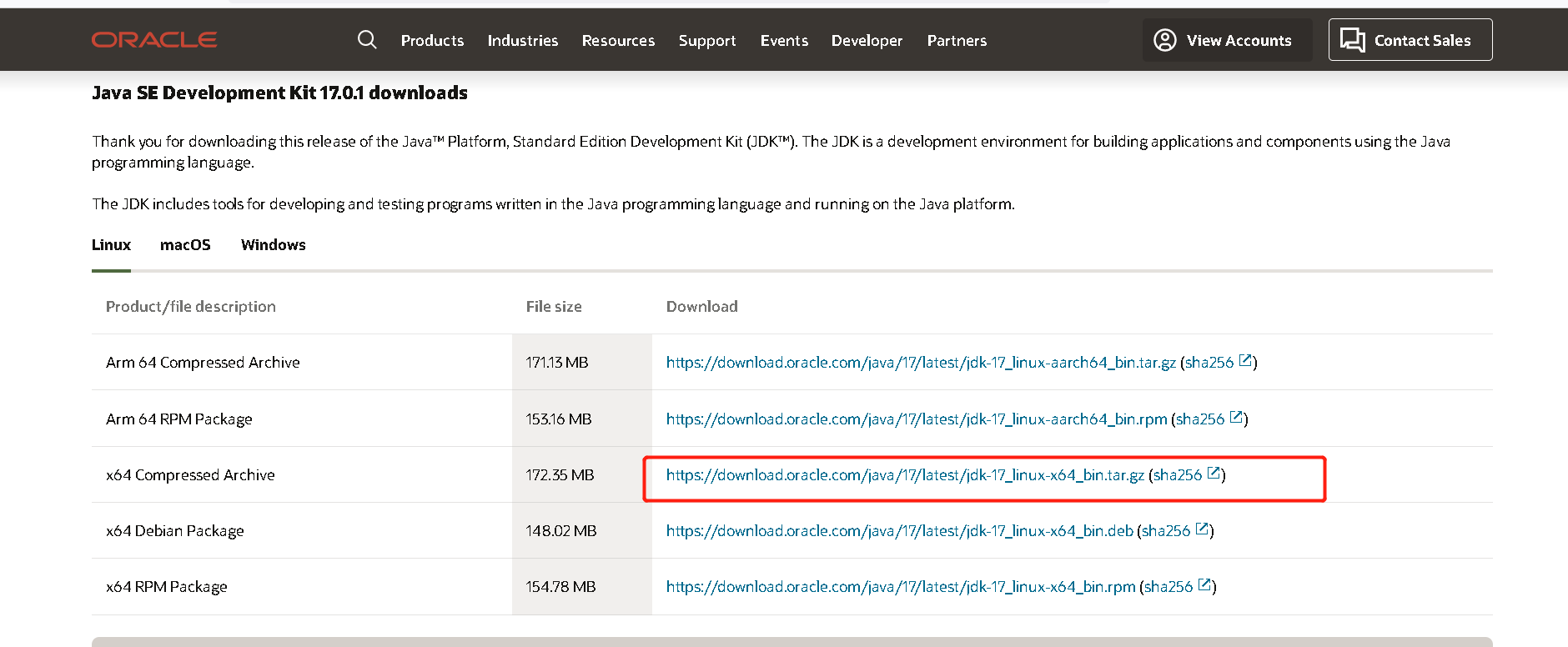 我下载的是Linux下的 x64 Compressed Archive 系统版本;