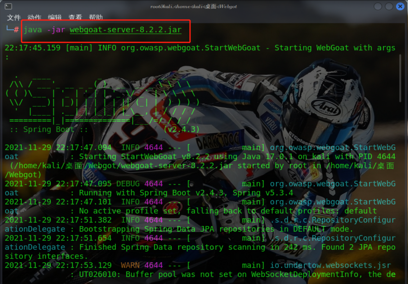 8.在终端打开webgoat-server-8.2.2.jar的文件夹