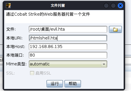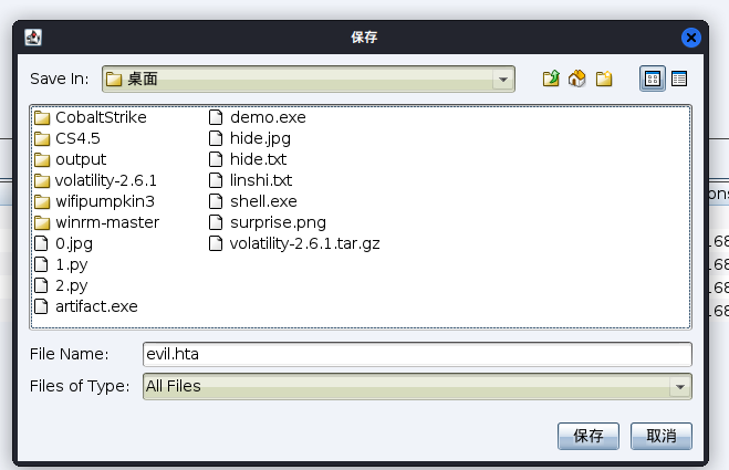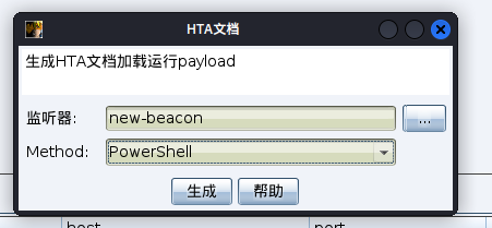 HTA是HTML Application的缩写,直接将HTML保存成HTA的格式,是一个独立的应用软件。HTA虽然用HTML、JS和CSS编写,却比普通网页权限大得多,它具有桌面程序的所有权限。就是一个html应用程序,双击就能运行。HTA木马一般配合网站克隆进行钓鱼攻击。cs可以生成