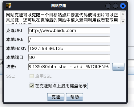 选择一个网站进行克隆,上传hta木马
