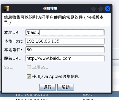 通过cs系统分析器生成url,诱导用户访问,即可获取目标浏览器信息,目标访问url即可收集到信息,而且会跳转到设定好的网站,目标很难发现
