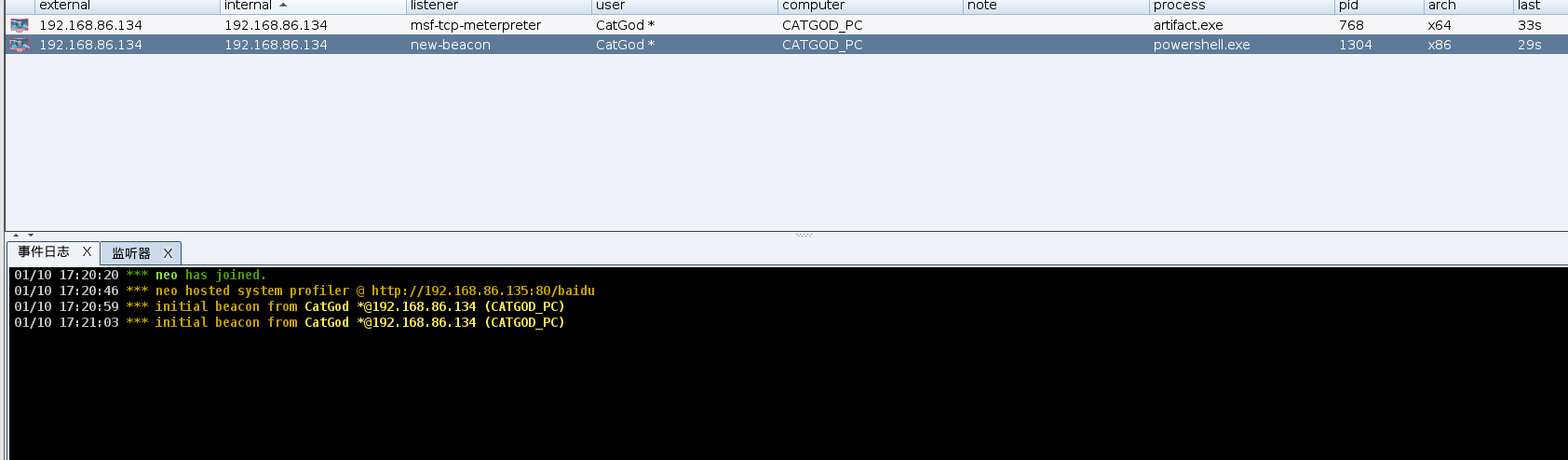 目标一旦访问就会上线cs