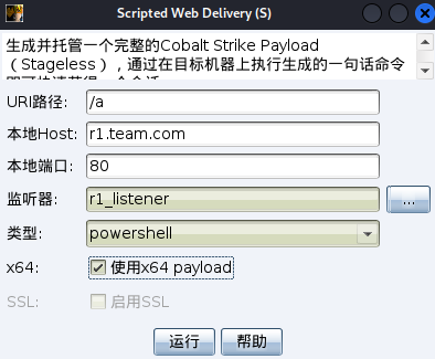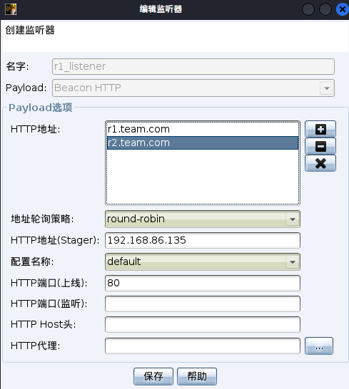 6、添加web脚本传递(这里本地Host添加的内容为代理服务器的dns/ip,这样生成的payload中将不会暴露TeamServer(也就是kali)的ip地址,从而防止暴露)