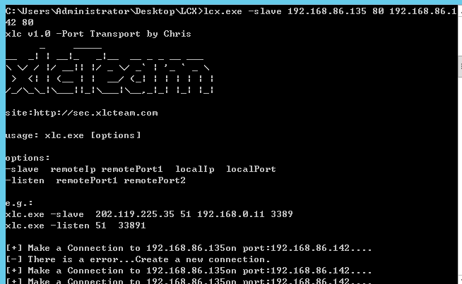 3、在ubuntu虚拟机中下好socat代理工具,在win2012虚拟机中下载lcx.exe进行端口转发;