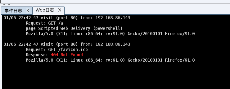 7、将生成的payload中的http地址提取出来访问,可以查看生成的payload是否生效。与此同时,可以在View-Web Log中查看访问记录,这也能判断payload是否生效