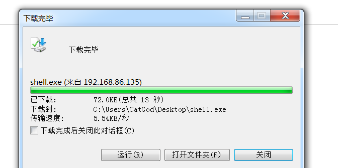 所生成的代码具有攻击性,目标机利用IE浏览器访问即可上线cs