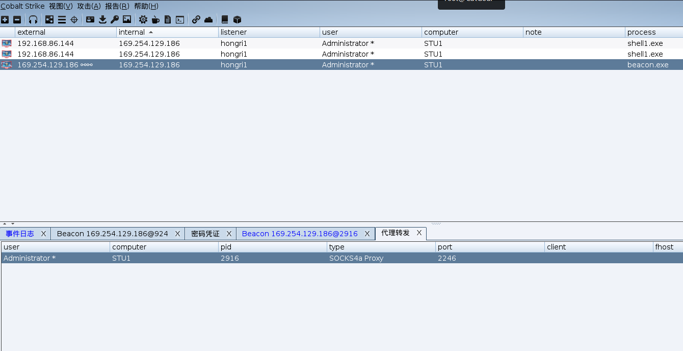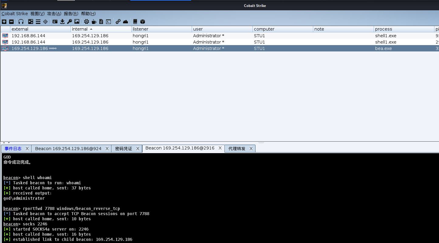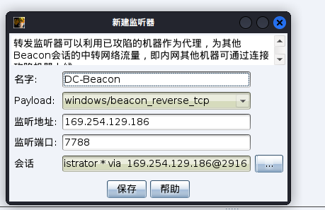 6、使用前面用到的隧道转发,上传木马,使域控上线cs