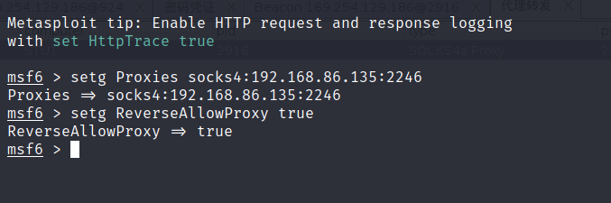 4、复制命令到msf中执行,做正向代理和反向代理,这样也可以进行内网的扫描